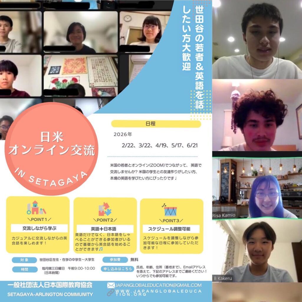 Once a month, we hold a Japan-U.S. Online Exchange for young people from Japan and the U.S. every Sunday morning starting at 9:00 AM, JPT.