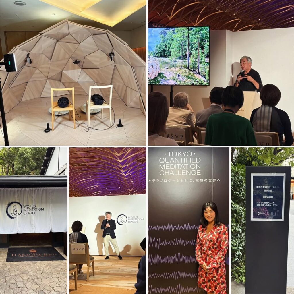 I participated in the “Quantifying Meditation Challenge Tokyo Tournament,” a meditation competition event that visualizes the state of the mind during meditation in real time and pits participants against each other to see who can maintain the deepest state of stillness and concentration.
