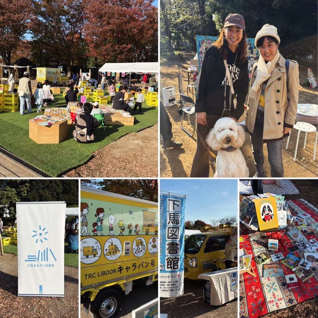 今年は犬と一緒に体験するコーナーもあります。保護犬の譲渡会も実施中。下馬図書館からヨシタケシンスケカーも来ています。